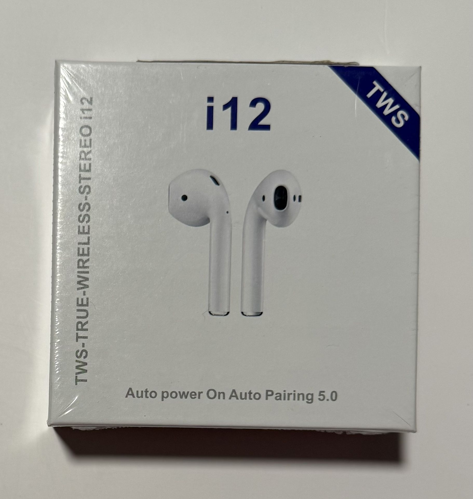 Enjoy wireless freedom with the TWS i12 True Wireless Stereo Earbuds featuring Bluetooth 5.0 connectivity for a stable and efficient connection. Designed for convenience, these earbuds automatically power on and pair when removed from the charging case. Perfect for music, calls, workouts, and everyday use. Product Features: ✔ Model: i12 TWS ✔ True Wireless Stereo (TWS) ✔ Bluetooth 5.0 technology ✔ Auto Power On ✔ Auto Pairing ✔ Built-in microphone for hands-free calls ✔ Compact charging case included ✔ Compatible with most Bluetooth-enabled devices What’s Included: • Pair of i12 wireless earbuds • Charging case • Charging cable Brand new, sealed. Please see pictures for further details.