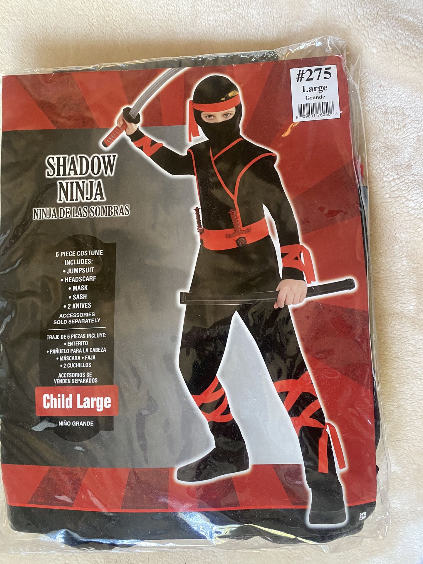 Black and red ninja costume. Kids large. Worn once. Everything written on bag is included.