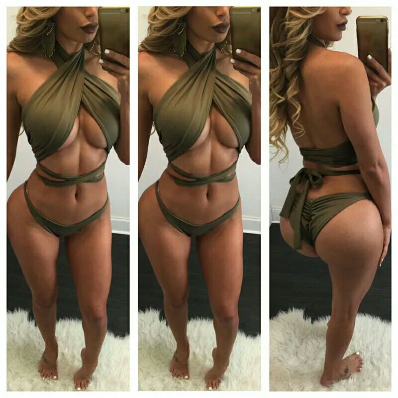 Sexy Olive Dark Green Two-Piece Tie up Low Waist Bikini