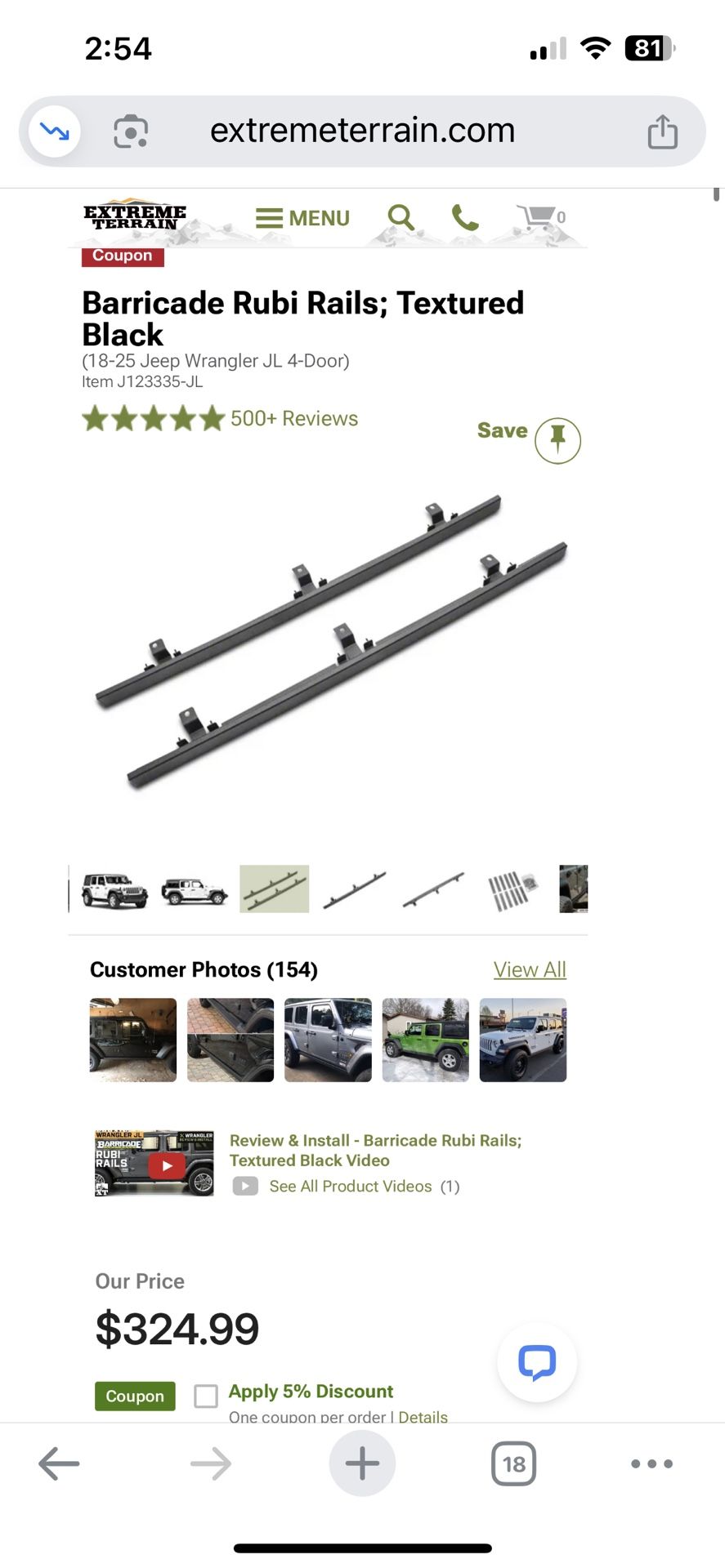 Barricade Rubi Rails; Textured Black (18-25 Jeep Wrangler JL 4-Door)