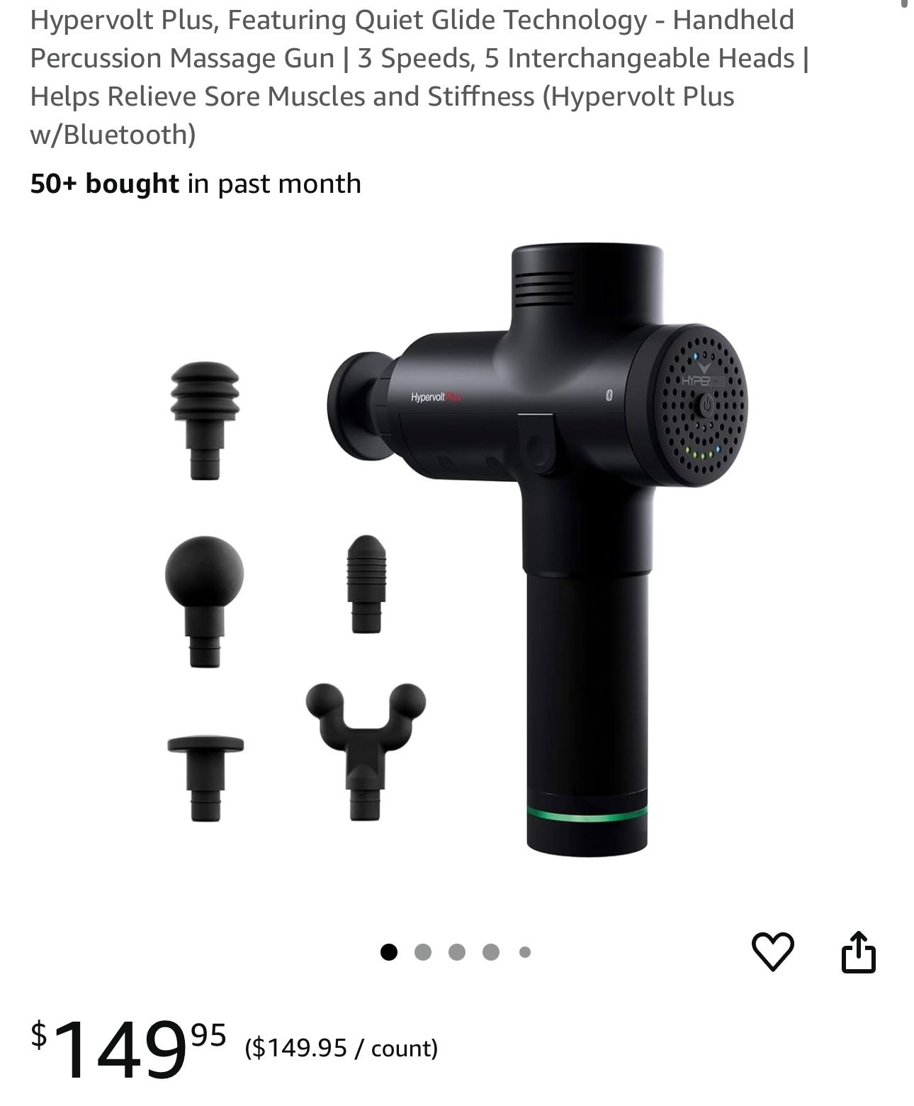 Hypervolt Plus, Featuring Quiet Glide Technology - Handheld Percussion Massage Gun | 3 Speeds, 5 Interchangeable Heads | Helps Relieve Sore Muscles and Stiffness (Hypervolt Plus w/Bluetooth)