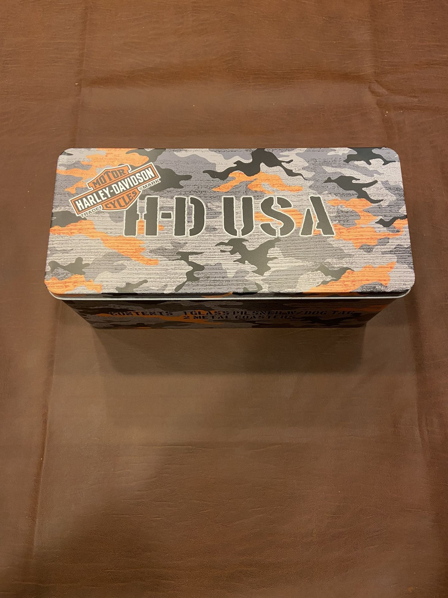 Brand new in the original case Includes 1 Pilsner, 2 coasters and 1 dog tag necklace