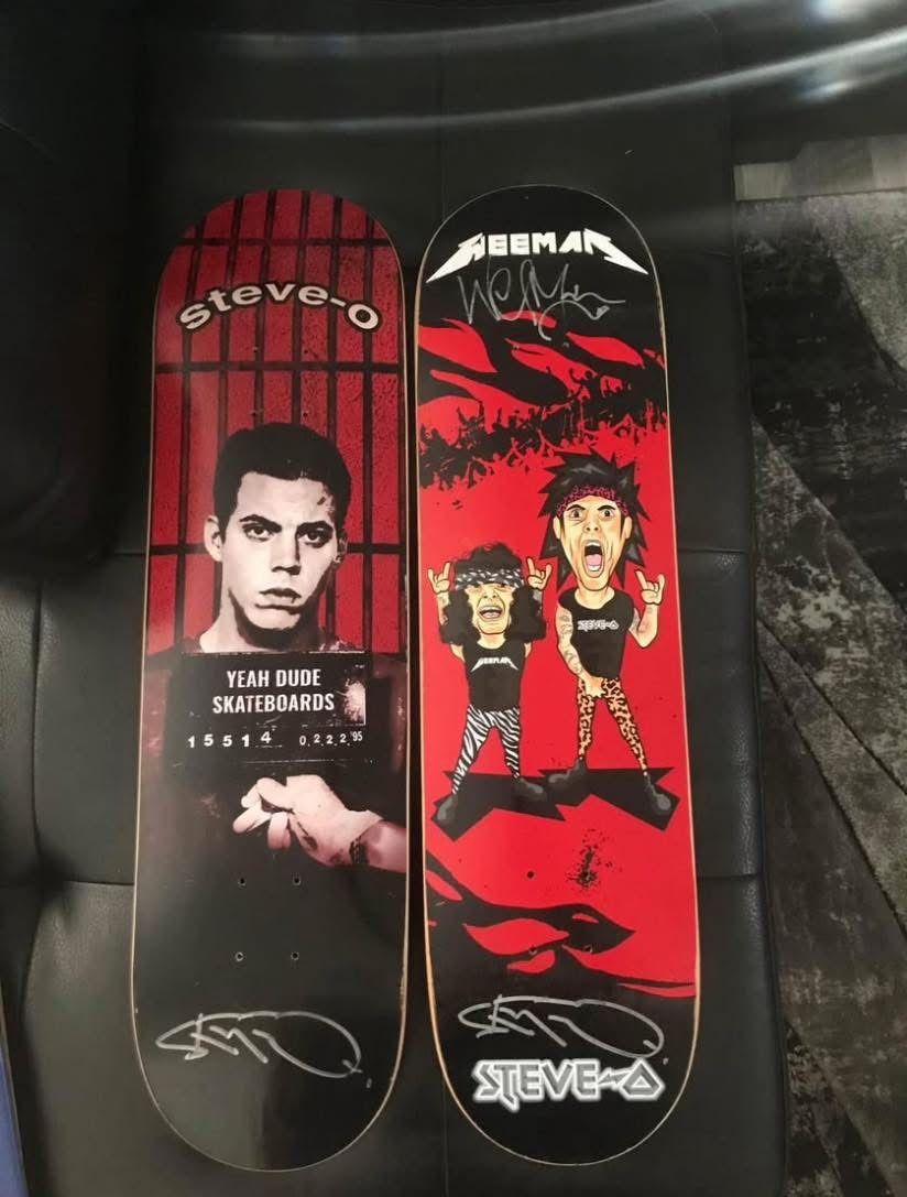 Steve-O autographed skateboard deck Steve-O x Weeman autographed skateboard deck I want to sell them together for $500 I’m willing to negotiate a little bit but nothing crazy available for pickup only both are brand new perfect condition