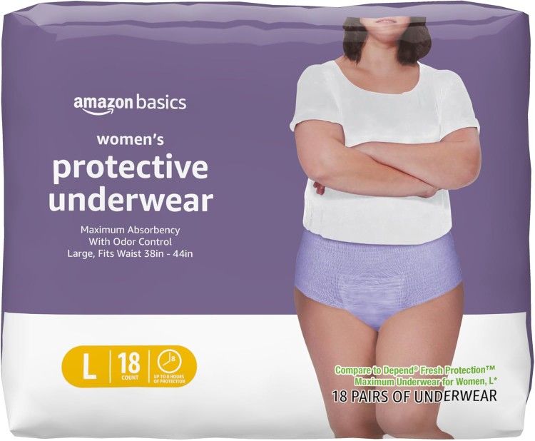 Amazon Basics Incontinence Underwear for Women, Protective, Disposable,18 Count