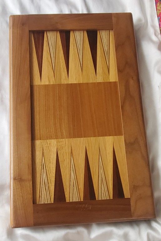 David Levy classy wooden backgammon game. 20" x 12" closed and 24" x 20" open. Excellent condition.