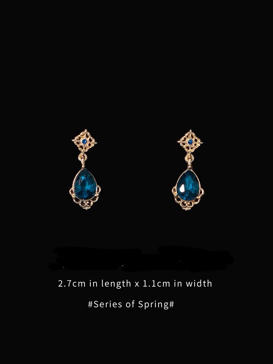 Blue tear drop elegant aquamarine diamond drops earring with silver needle