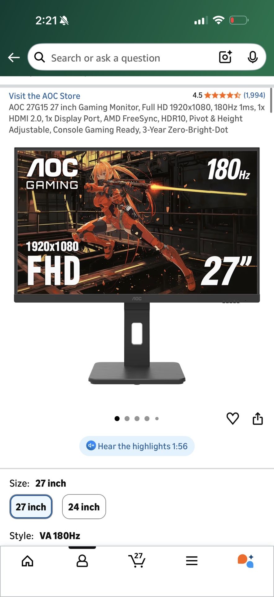 Gaming Monitor 27 Inch