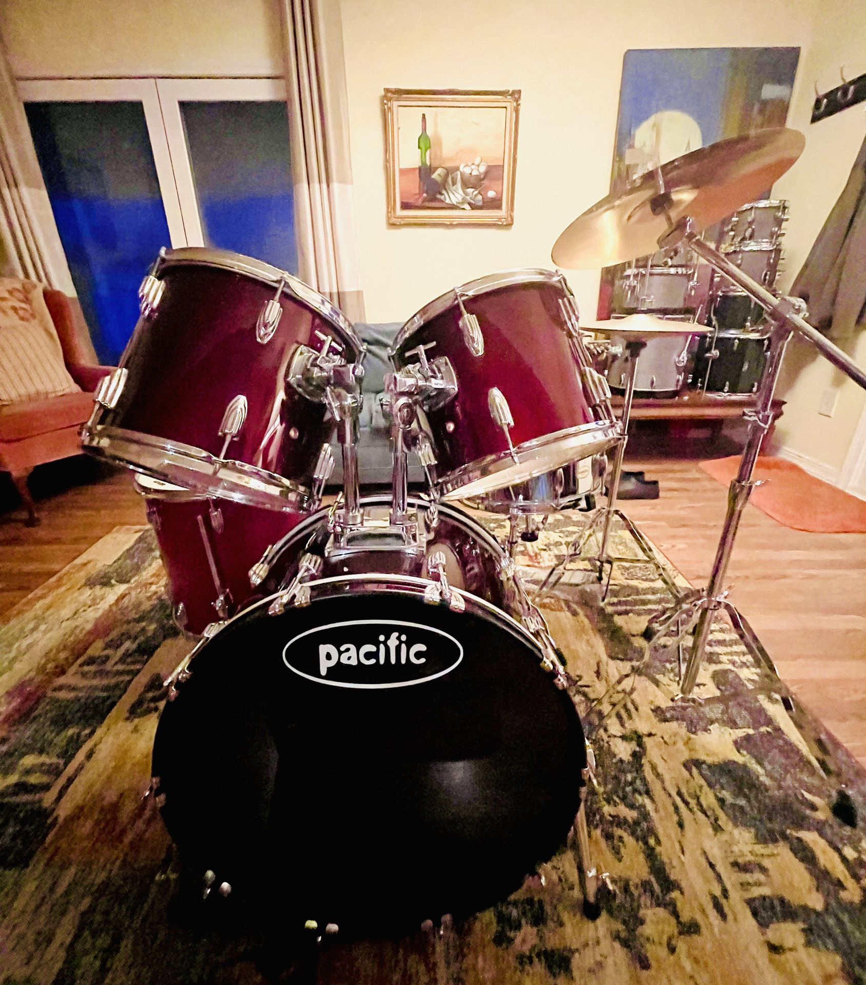 Pacific Beginner Adult Size Maroon Drum Set. Very good sturdy drum Set . Best for new player or even for Professional. Comes with everything in pictures . Cash only . Pick up or local meet . Thank you π