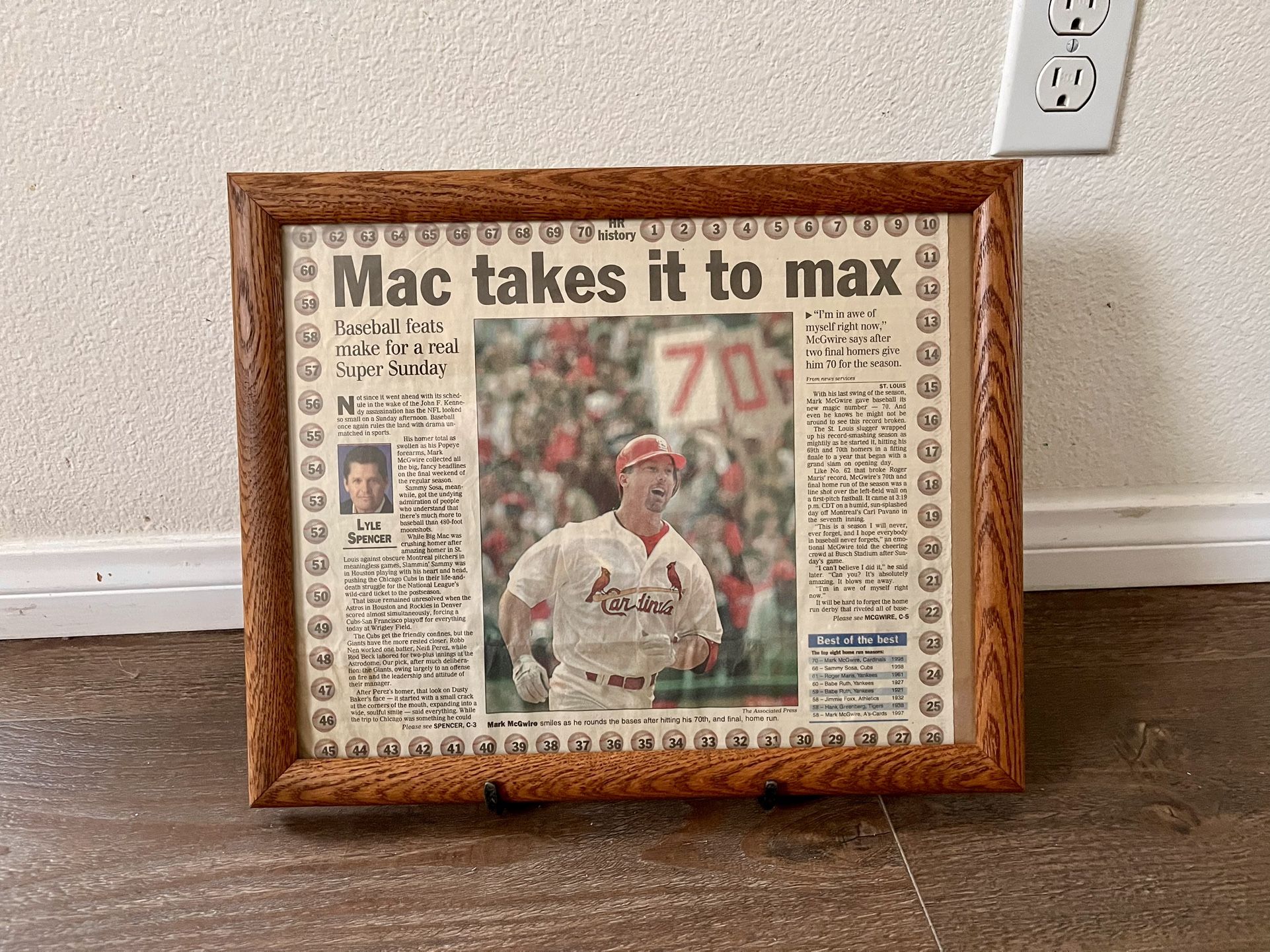 Framed Baseball Newspaper Article in Brown Frame Mark McGuire 13/16 inch