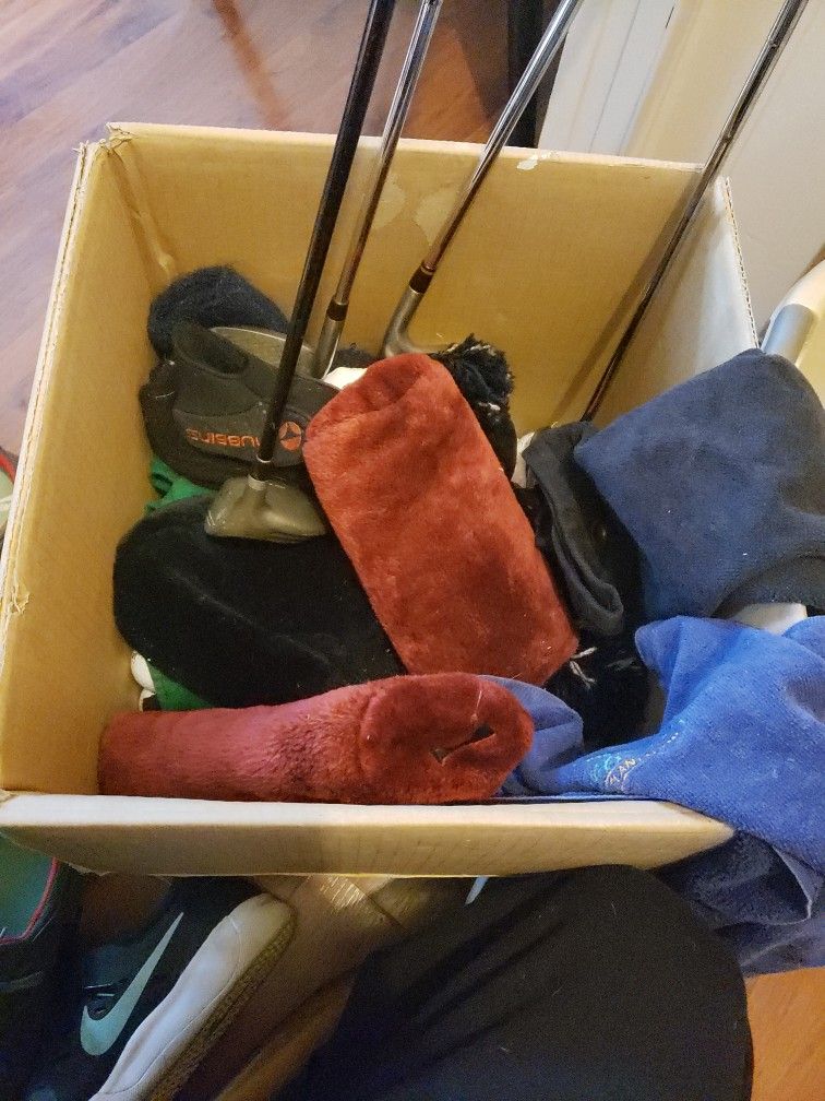 4 golf clubs, about 50 golf balls, 3 towels, 9 head covers. Still going through things and might find more stuff that I'll include