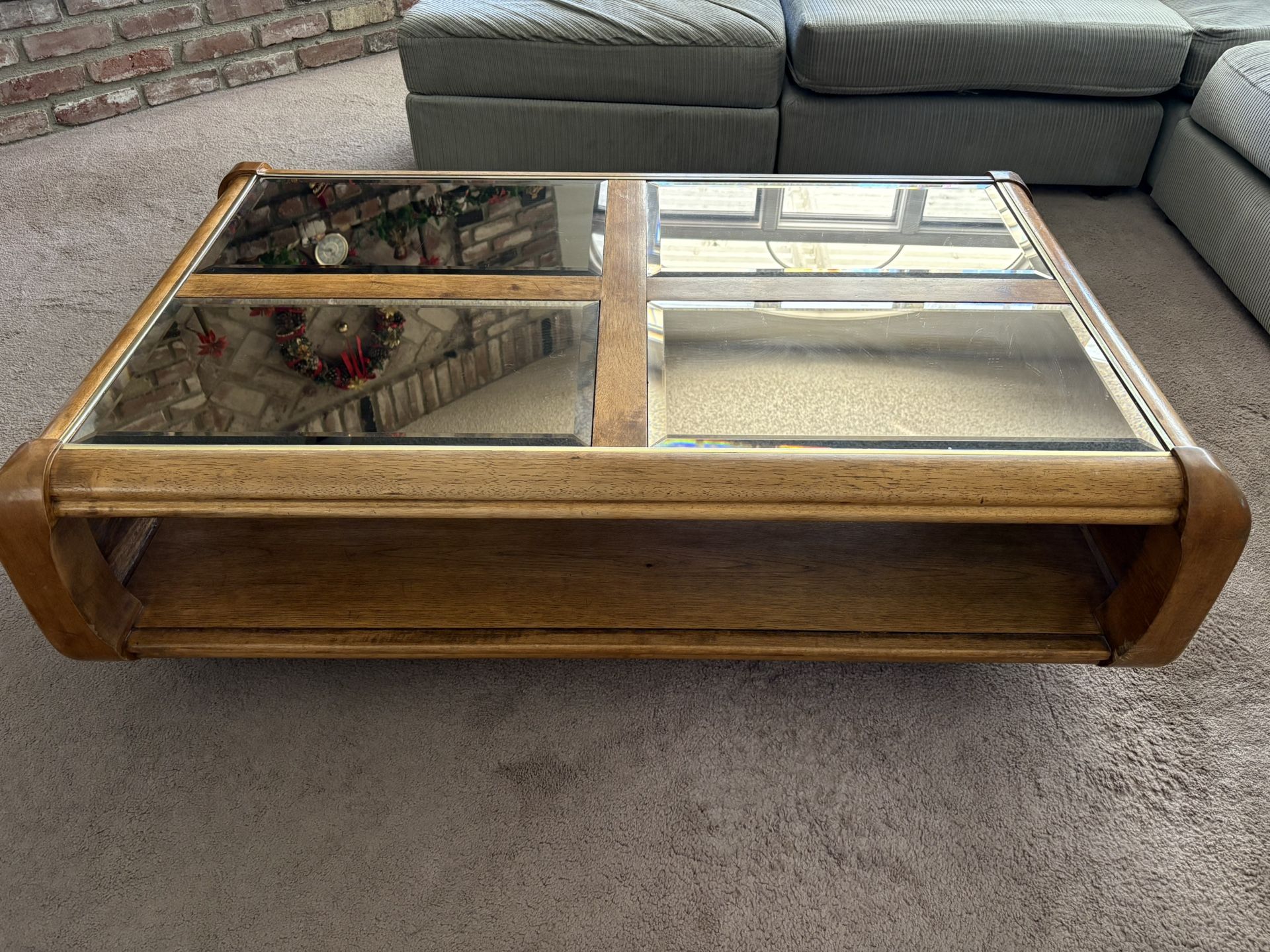 Wood with reflective mirrors On wheels to roll easily 48in long x 29in wide x 15in tall