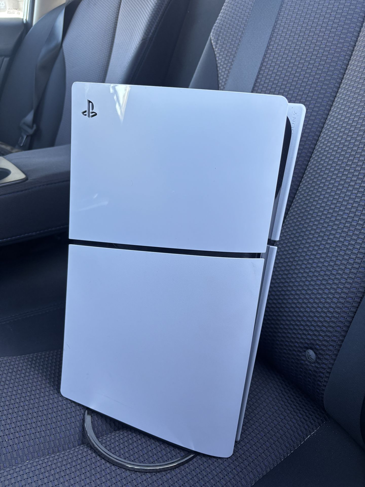 PlayStation 5 Slim with disc drive. Comes with all original cables, two controllers (black and white) and pulse headset