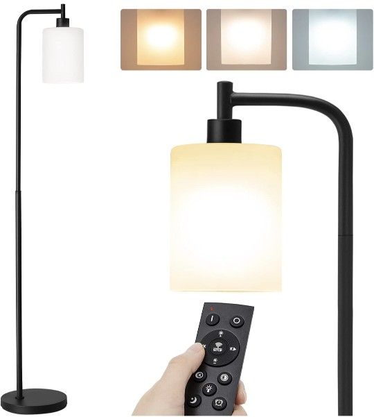 *NEW NEVER USED AND STILL IN THE BOX* Floor Lamp with Matte White Glass Lampshade,Remote Control, Stepless Color temperatures and Brightness,Modern Standing Industrial Lamp for Living Room, Bedroom and Office - Black Style: Modern Color: Black & White Shade Features: Remote, Foot Switch Control, Stepless Color Temperatures, Stepless Brightness Product Dimensions: 9.84"D x 12.21"W x 65.75"H Special Feature: Energy Efficient, Dimmable