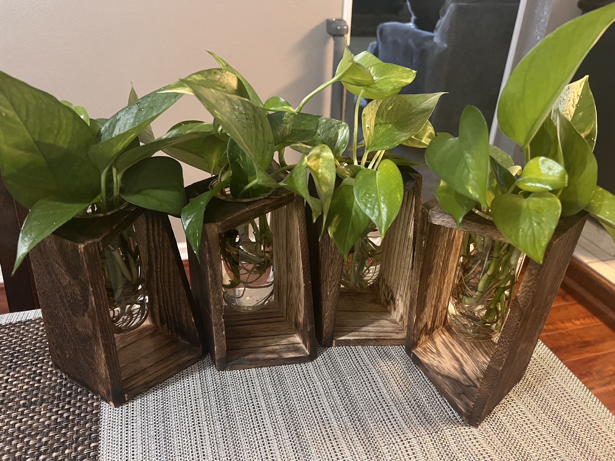 Propagated Marble Pothos. Rooted and ready to be potted. Healthy and Hearty Selling with the wooden stand