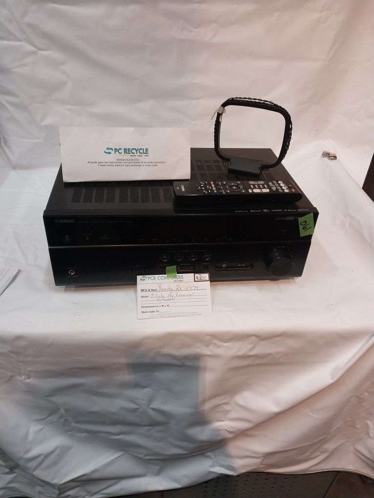 5.1ch yamaha AV receiver with remote and antenna. HDMI Bluetooth Dolby Wifi network ready, music cast Get it here for $100. Tested and working. Warranty =one week money back. Two weeks exchange or store credit. Pickup M-F 8-4 Pc Recycle and Repair 5817 238th st se Woodinville All prices negotiable