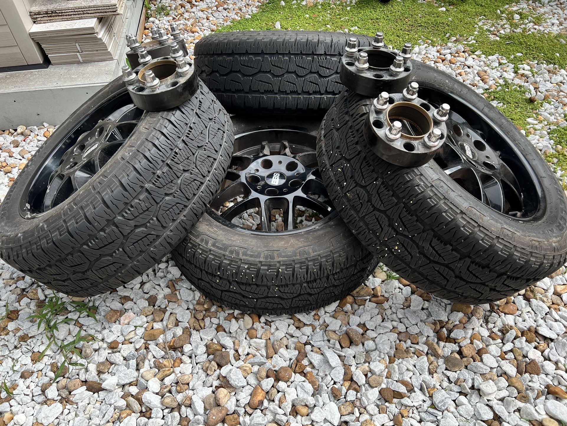 Set of 4 wheels with rims and accessories for the wheels. 6 months used. Thread looks new. Specifications on the pictures. No low ballers.