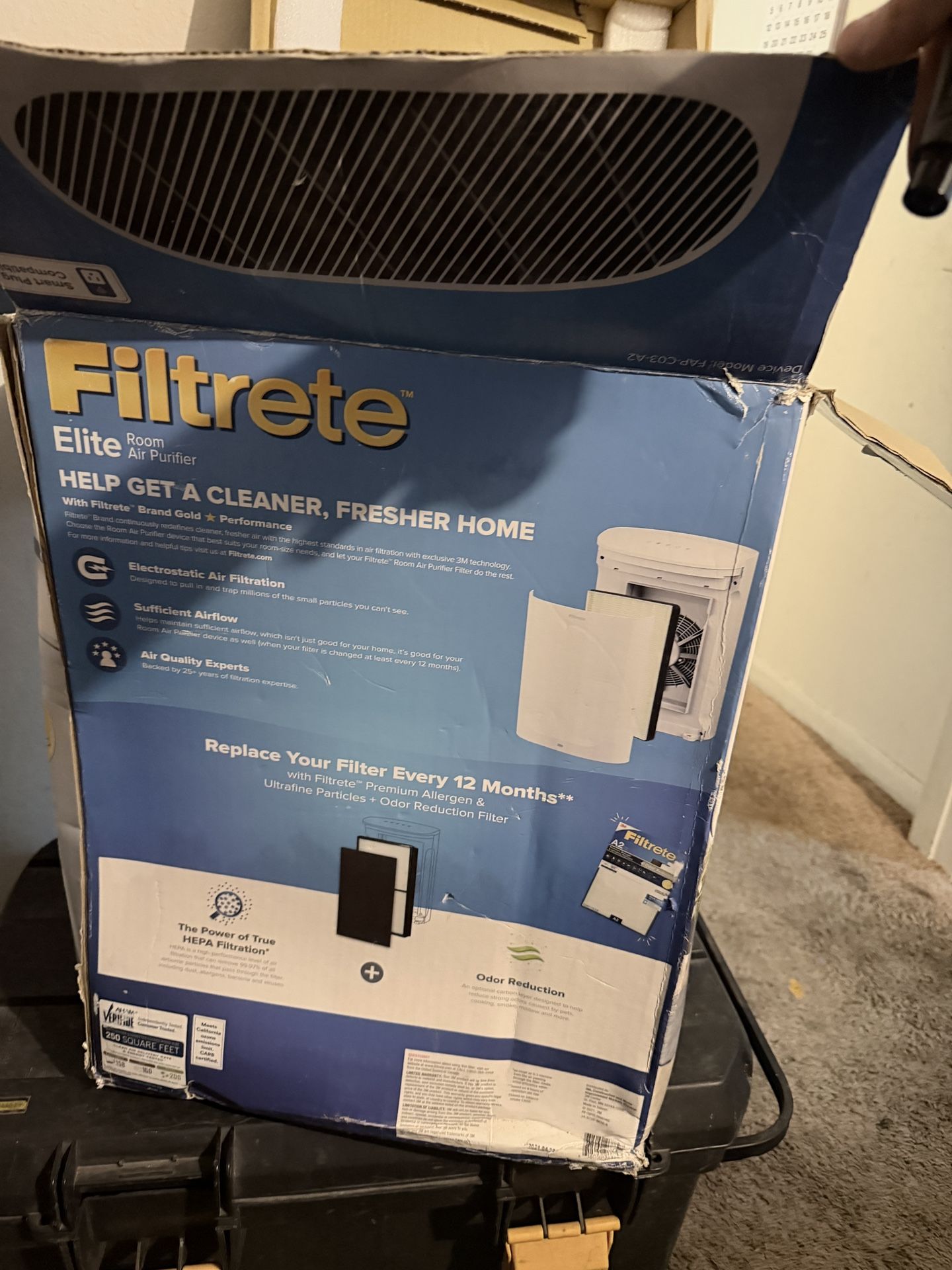 Filtrete Elite Room Air Purifier designed to improve indoor air quality by capturing allergens, dust, pollen, pet dander, smoke, and odors. Uses True HEPA filtration and electrostatic technology to trap microscopic particles you can’t see. Great for bedrooms, living rooms, offices, or apartments. Filter is easy to replace (recommended every 12 months depending on use). ✅ Features • True HEPA filtration • Reduces allergens & odors • Quiet operation • Ideal for allergy sufferers • Trusted Filtrete / 3M quality