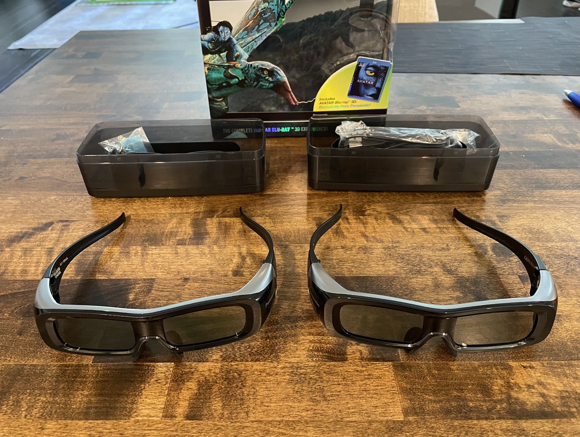 Selling a pair of like new Panasonic rechargeable full HD 3D glasses. Comes with two cases and charging cords. These glasses were used twice so they are basically brand new.