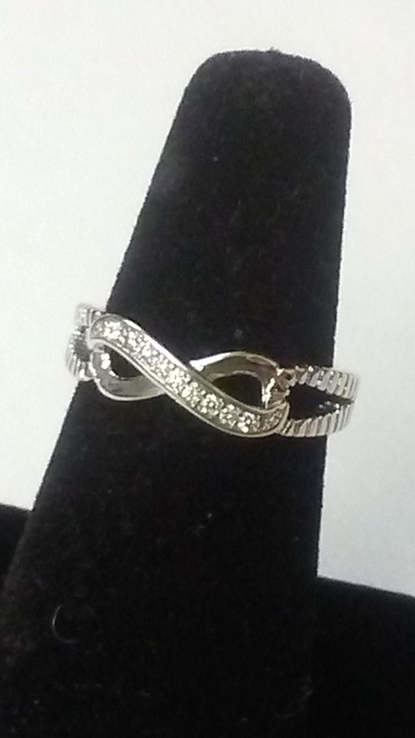 Infinity Ring with white sapphires. Sterling Silver 925 Size 6,8 Cute ring.