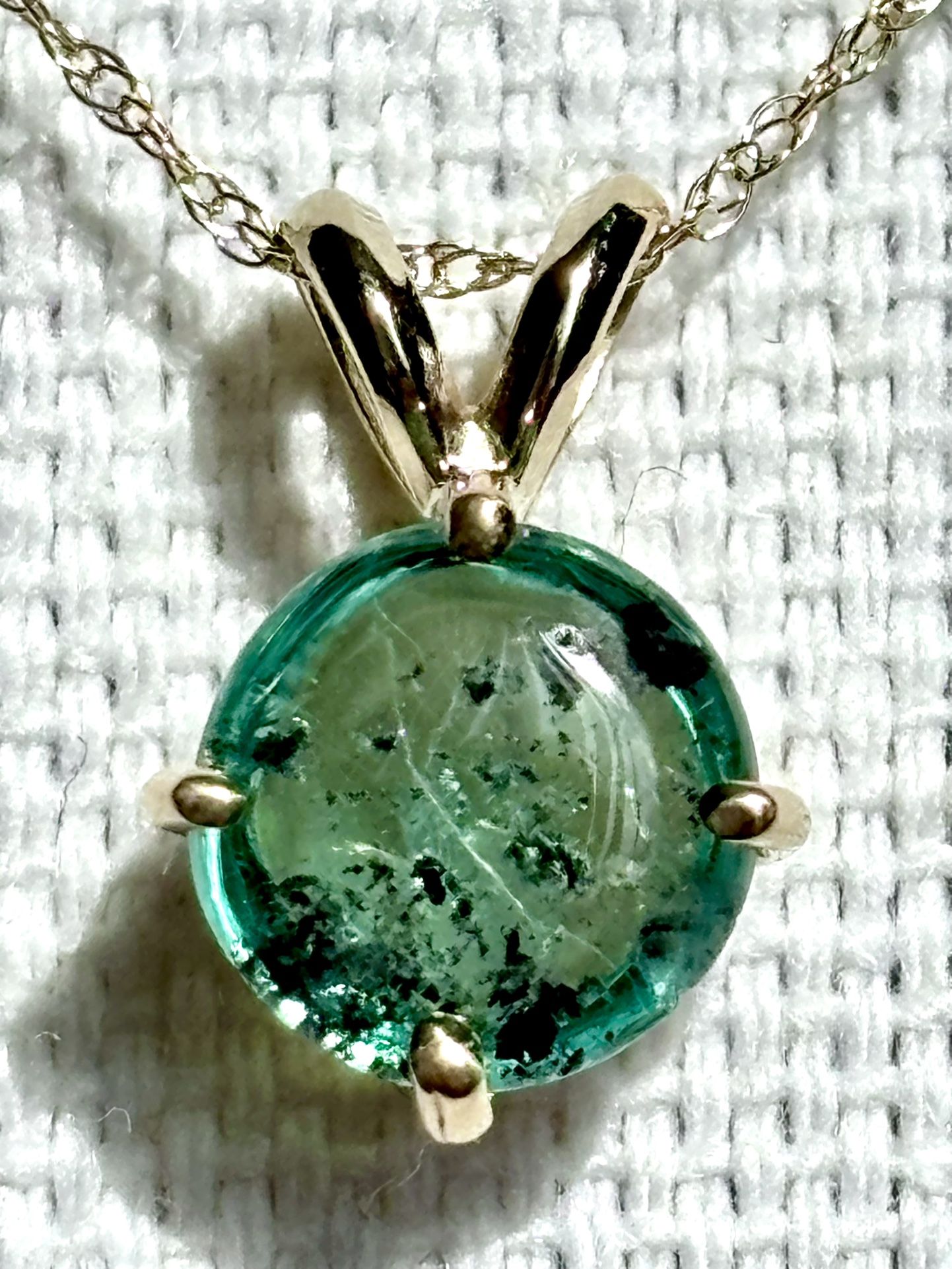 1.23 carats Colombian natural trapiche emerald pendant , 14k gold, chain include