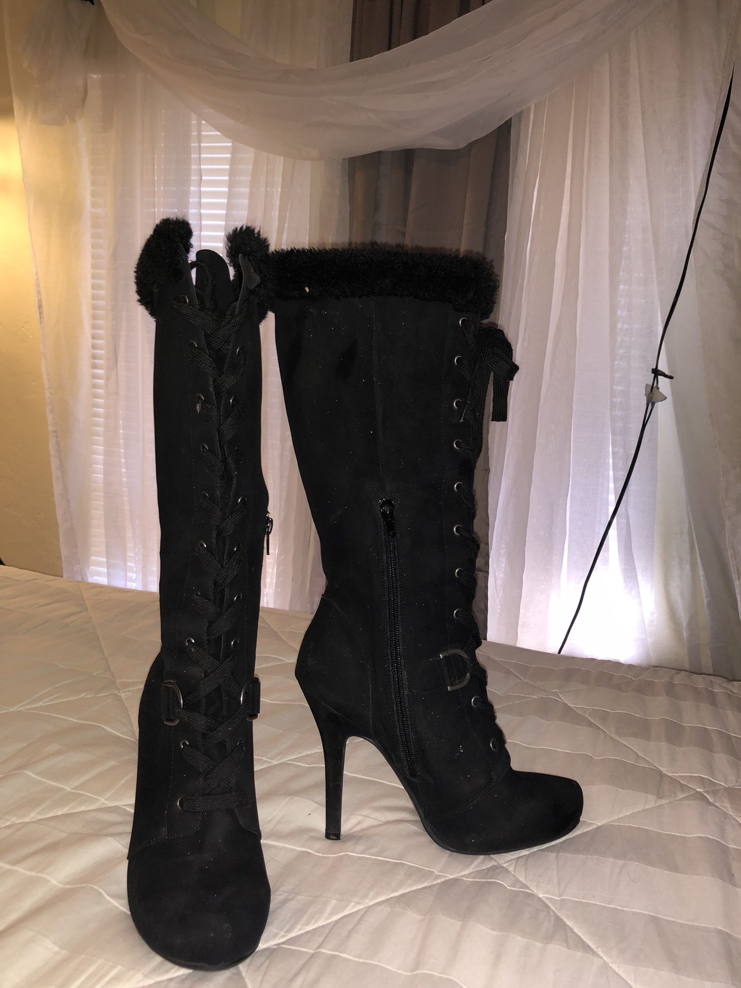 Women’s Black Lace Up High Heel Boots Size 7.5