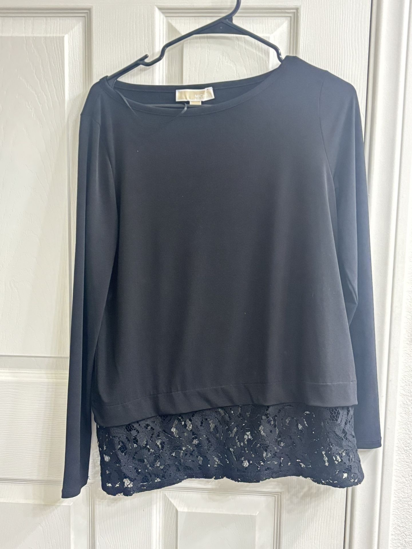 Michael Kors Women’s Long Sleeve Top W/lace Bottom Black Size Med