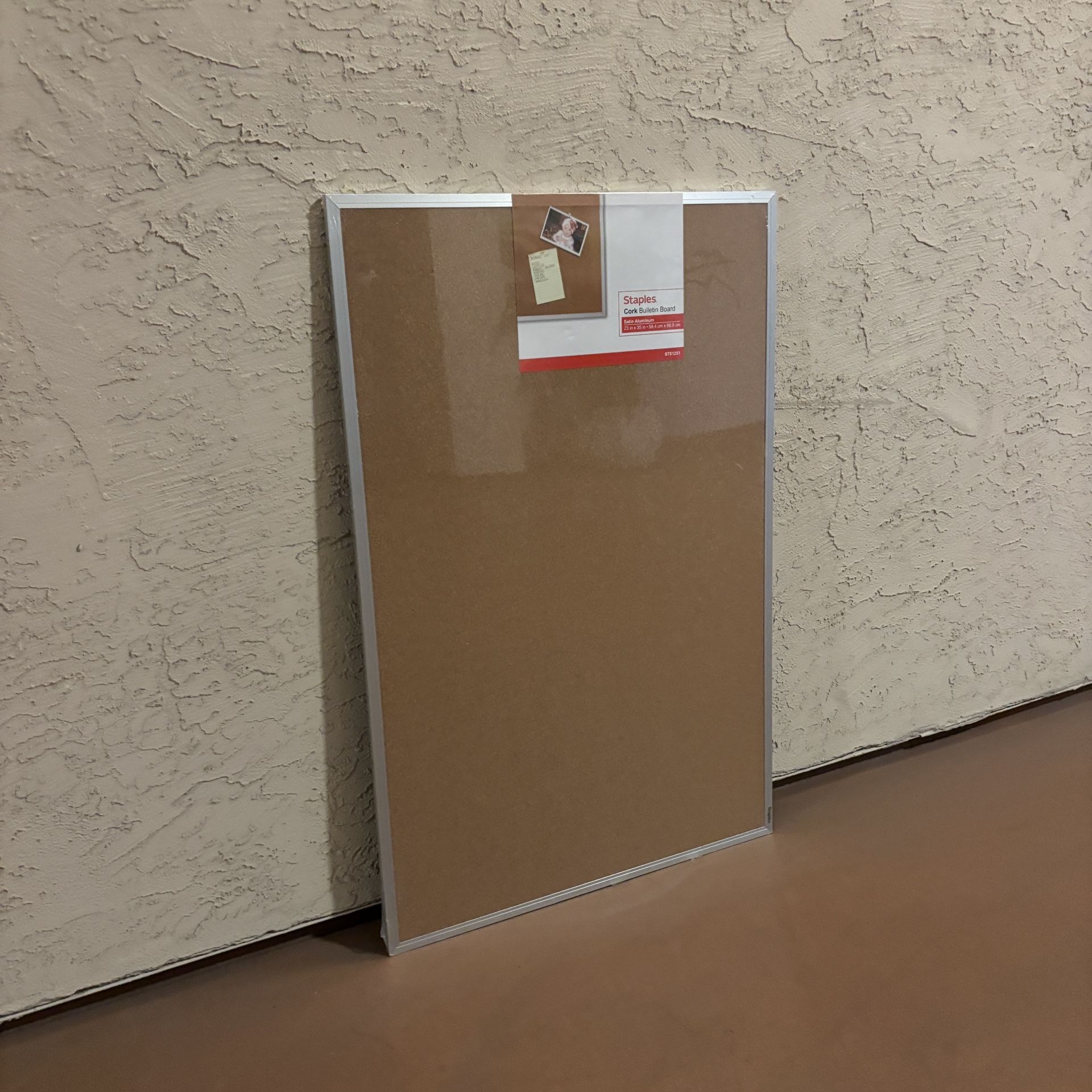 One New Cork Bulletin Board, Aluminum Frame, 3'W x 2'H (Sealed in Plastic) Corkboard