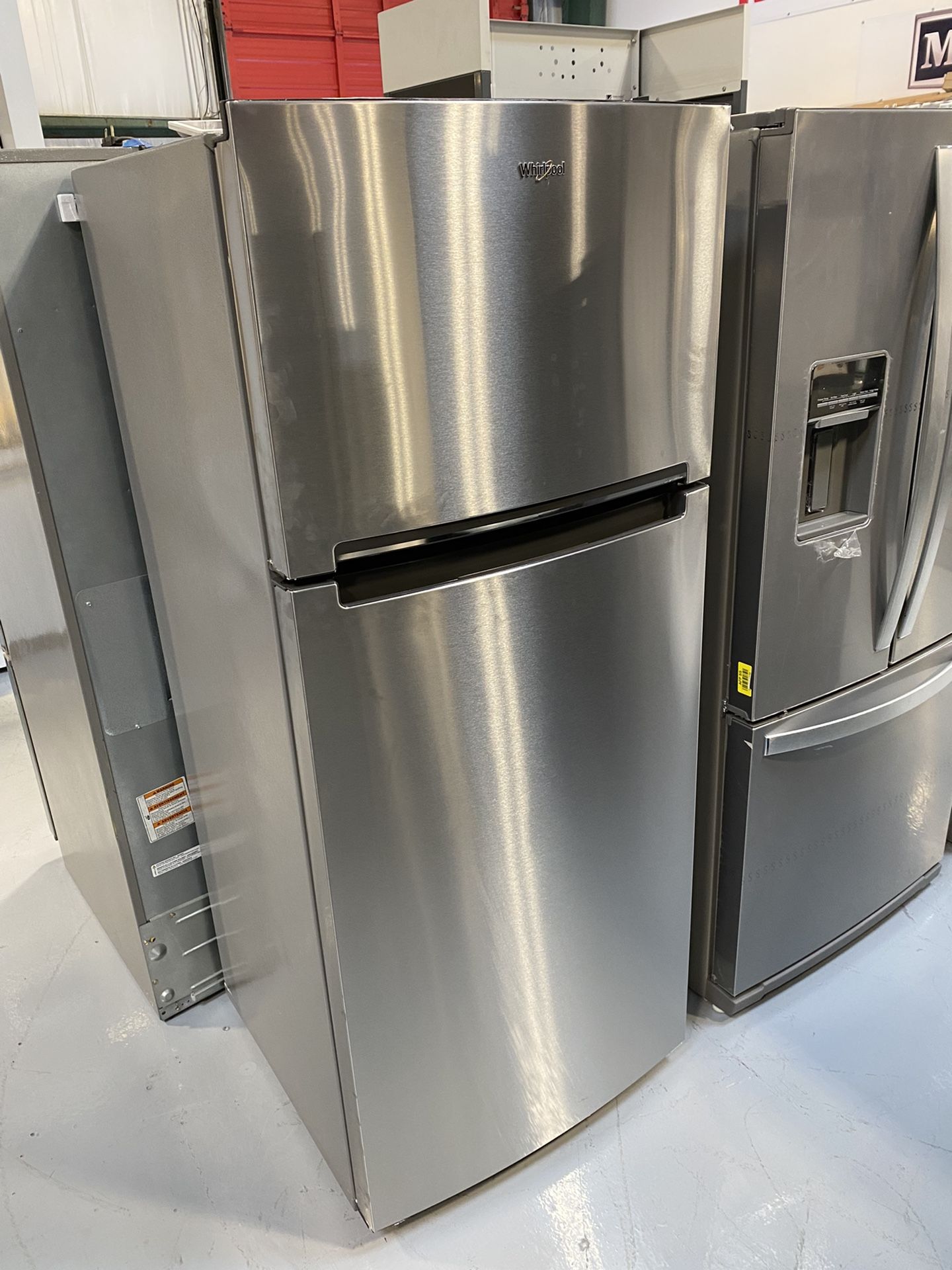 New Open Box Whirlpool Stainless Steel 28” Wide Refrigerator Compatible With The EZ Connect Ice Maker Kit - 18 Cu. Ft. Model #WRT518SZFM Dimensions: 28”W 31.625”D 67.125”H LED Interior Lighting Electronic Temperature Control Freezer Temperature Control EZ Connect Ice Maker Compatible Frameless Glass Shelves Includes a 12-month warranty Financing Available Delivery and installation available Contact us with any questions or to stop by to see this unit and others. Open Monday - Saturday 10am - 6pm Our inventory changes daily. Message us for availability.