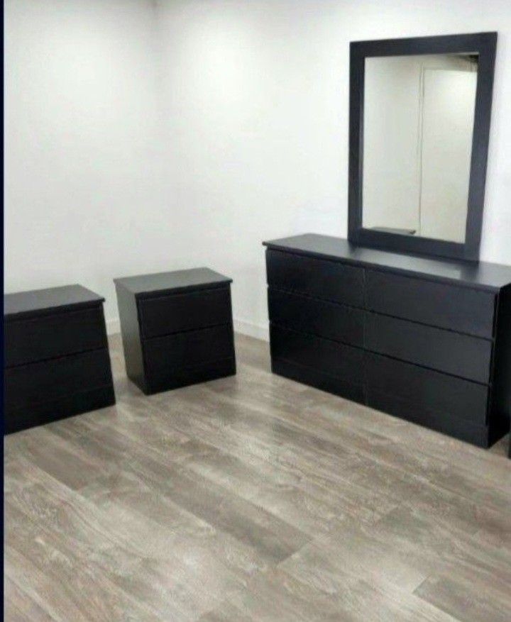 DRESSER WITH MIRROR AND TWO NIGHTSTANDS