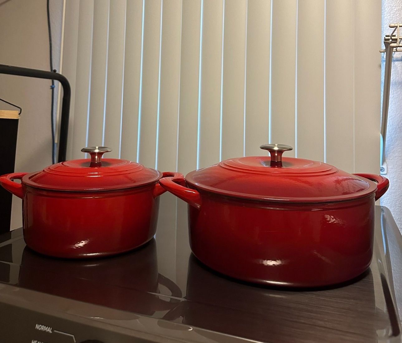 Brand new . DUTCH OVENS 2 PACK 4Qt / 3.7L 7Qt / 6.6L ENAMELED CAST IRON