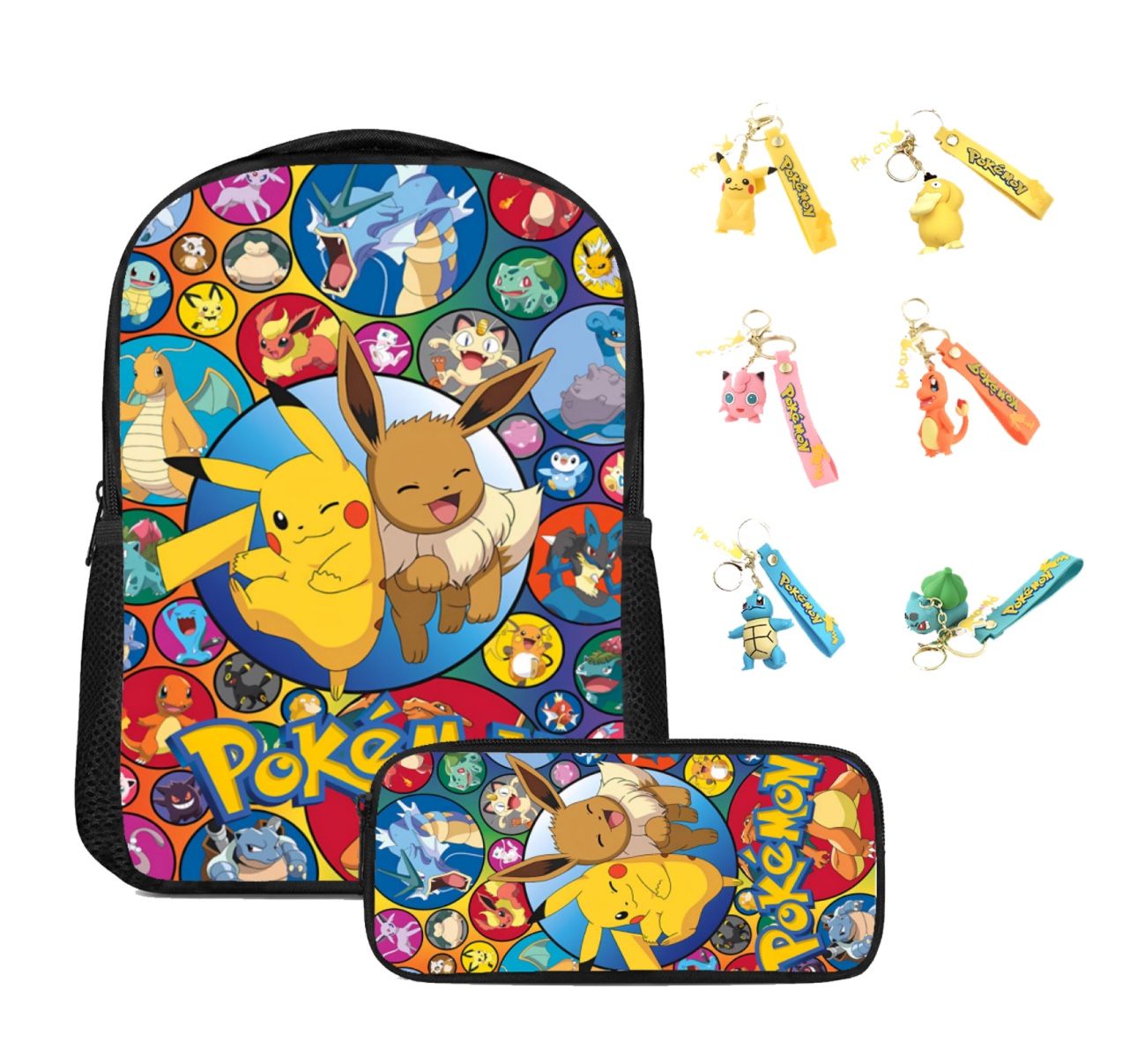 Pokemon Backpack with Pencil Schoolbag for Girls Boys with random one keychains.
