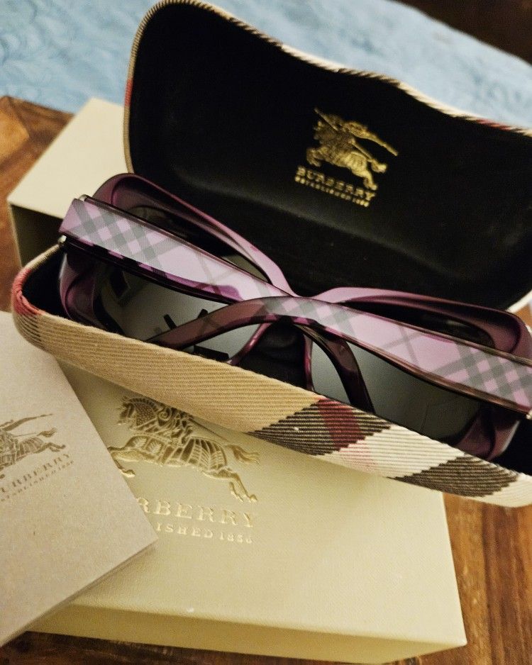 These striking Burberry Oversized Gradient Sunglasses are very chic and fashionable and would complement any outfit on a sunny day. Authentic, includes original box and papers. Frames are violet/purple tortoiseshell acetate with silver toned accents. Temples adorned with the classic Burberry plaid pattern. Includes the original Burberry box, plaid clsmshell case and black dust cloth - all with the classic Burberry Equestrian Knight logo. Engraved authenticity number on top corner of right lenses as pictured. Please review pictures for condition and frames measurements (in mm): - Lens: 62 - Bridge: 17 -Temples: 115 Pre-owned item with expected signs of wear and tear, but in overall great vintage condition. Some surface scratches, dirt, rubbing, etc. Buyer advised to do a thorough cleaning prior to wearing. Priced fairly to sell. Ships nationwide within 3 business days. LOCAL BUYERS must pick up 1604/Bandera Rd area. Thank you for shopping LilianaLoveVintage!