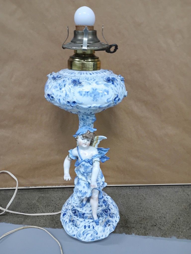 This Vintage Lovely Lamp made of porcelain ,is sold as is. There are some parts of the lamp that has some pieces missing. Please look closely at the detailed photos. Make me a fair offer. Thankyou !
