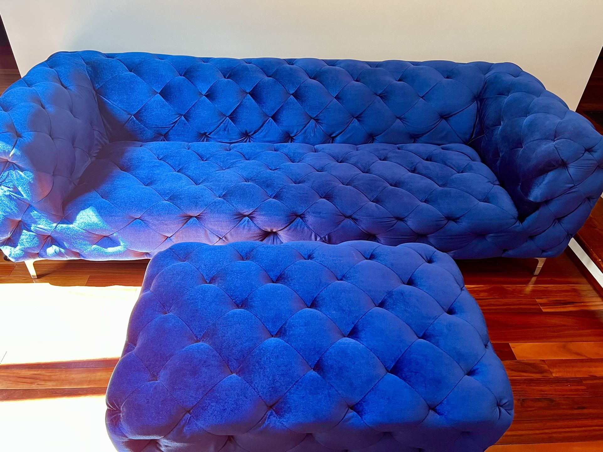 Blue Tufted Sofa And Ottoman set