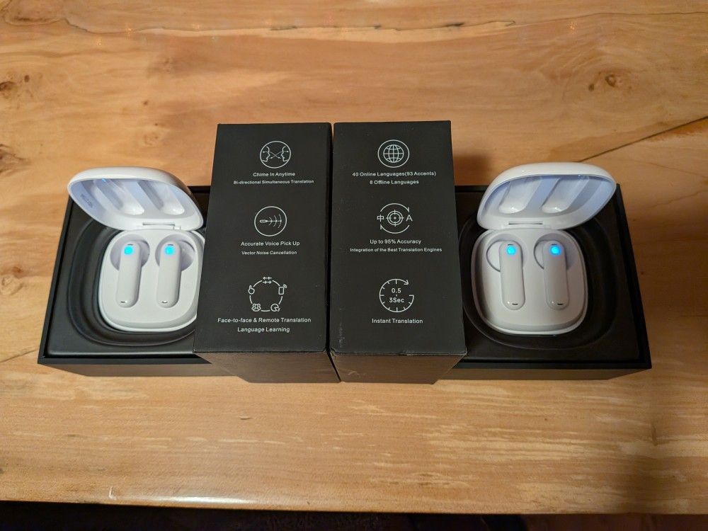 Two pairs of Timekettle WT2 Edge earbuds. These are great, and are in excellent condition. Very clean, hold a charge, connect well, no issues. We got them before adopting our daughter last year, but she has taken to learning English very quickly, so we are now selling them for $50ea OR best offer! Don't hesitate to make a low offer. We just want them to go to someone who will use them π. Some info below, and let us know if you have any questions! The Timekettle WT2 Edge is a pair of AI translation earbuds designed for seamless, real-time, two-way communication, offering simultaneous interpretation for efficient conversation, hands-free operation, offline translation for key languages, and support for multiple users (up to 6) with a focus on business and travel. It features three modes (Simul, Touch, Speaker) for flexibility, a 3-hour bud battery life with 12 hours total via its case, and uses advanced noise cancellation for clear voice pickup, distinguishing itself from music-focused earbuds like the M3. Key Features Simultaneous Interpretation: Doubles efficiency by translating both ways at once, eliminating turn-taking. Hands-Free & Auto-Recognition: Automatically recognizes speakers and sentence breaks, perfect for presentations or meetings. Modes: Simul (one earbud each, simultaneous), Touch (tap to speak/translate), Speaker (translates aloud, phone display). Offline Translation: Supports 13 language pairs offline, with online use supporting 40+ languages/dialects. Multi-Person: Can translate conversations for up to 6 people. Battery: ~3 hours continuous use, 12 hours total with charging case. Design: Half in-ear, similar to AirPods, with optional ear hooks for security, plus silicone pads for snug fit. How it Works (Modes) Simul Mode (Most Efficient): Each person wears an earbud; you speak your language, and the other person hears it translated in their ear simultaneously. Touch Mode: Tap the earbud to speak your language; the translation plays for the other person. Speaker Mode: One person speaks, the earbud translates aloud, and translations appear on the app. Who it's For Travelers and international business professionals needing deep, efficient communication. Users who need hands-free operation during presentations or document handling.