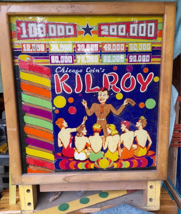 I have for sale a vintage wood mechanical pinball machine. I got this intending to restore it but don't have the time. It has the legs, a chip in the field glass, and some of the front veneer has fallen off.