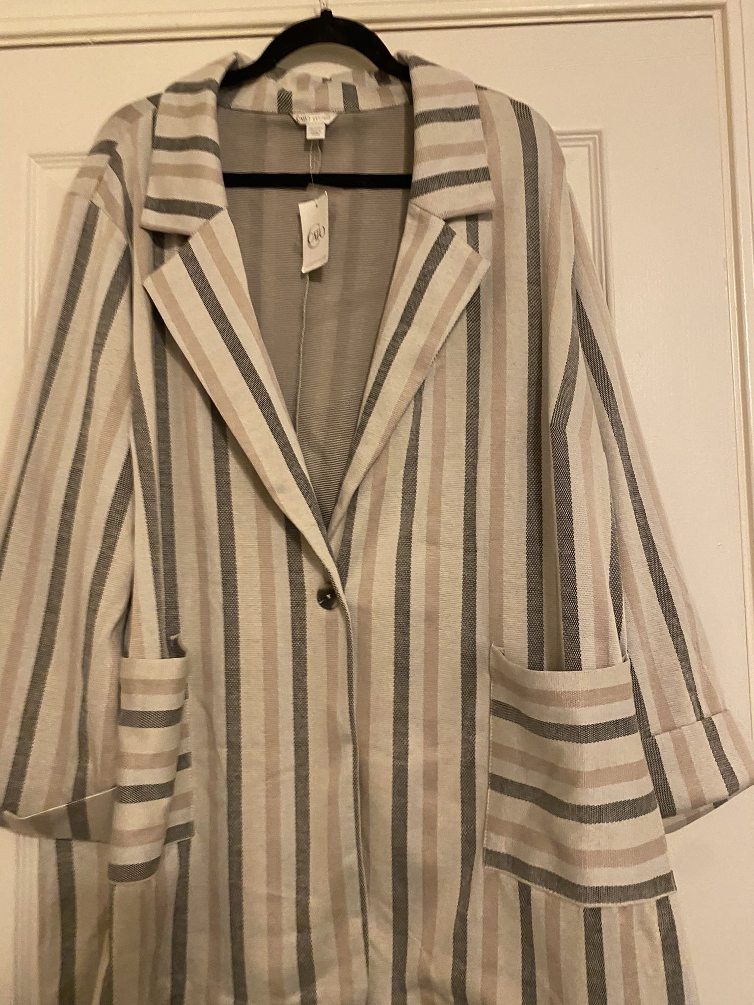 Medium weight jacket/blazer. Cream with tan stripes. Extremely comfortable