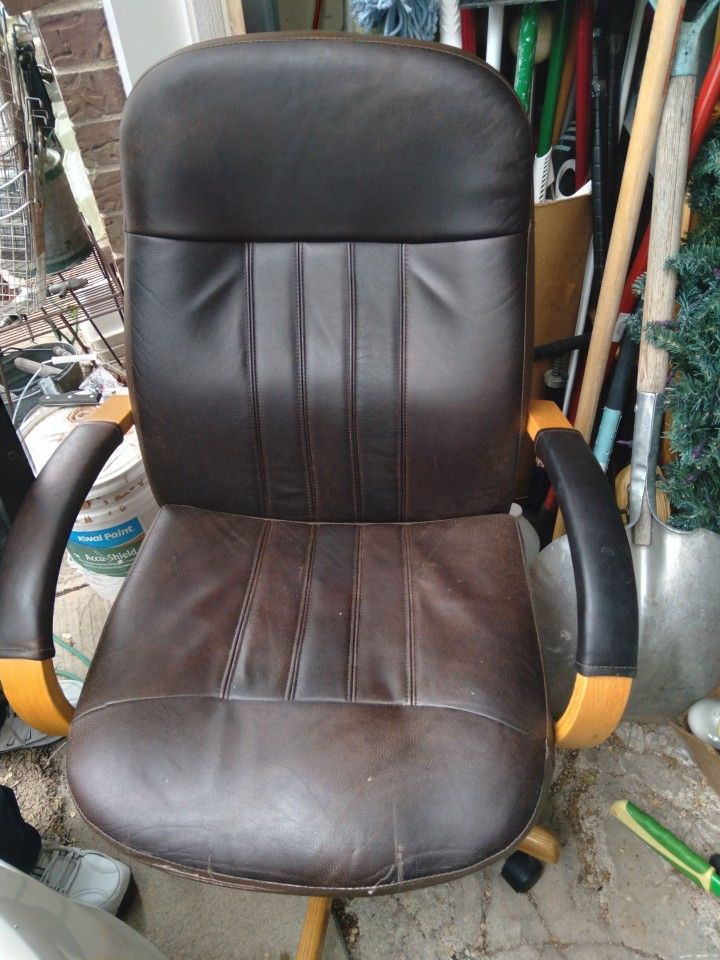 Desk chair brown leather in good condition.