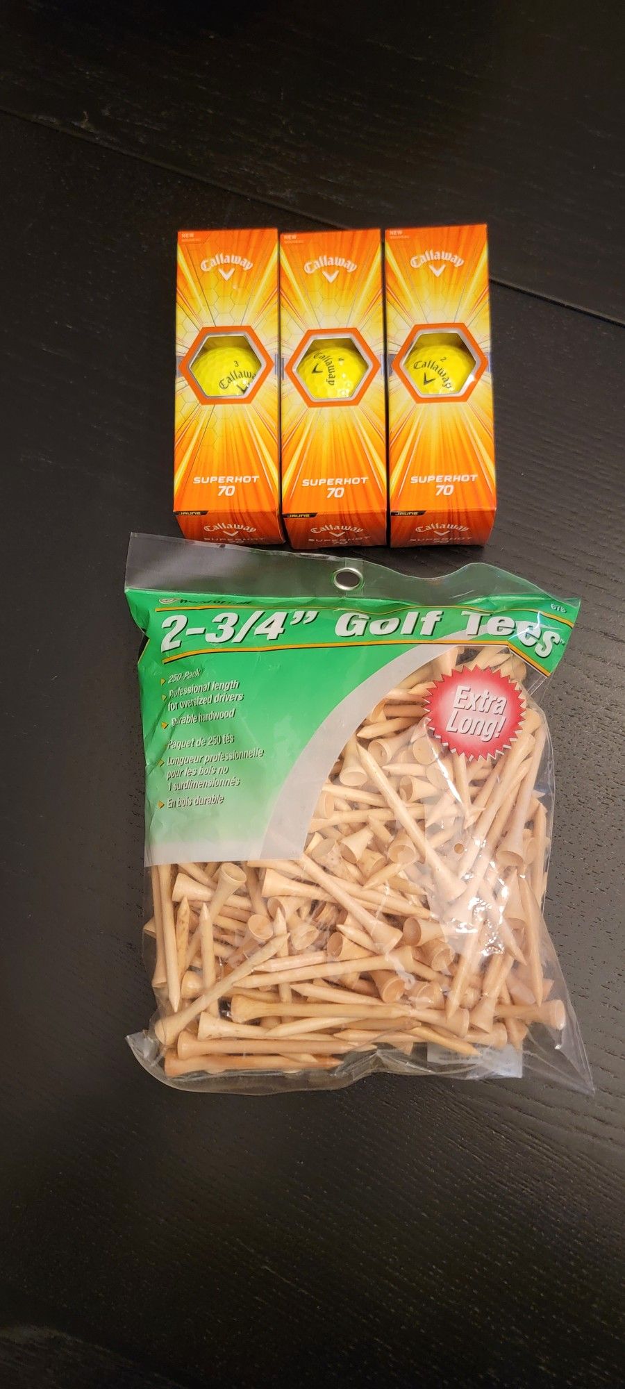 3 (3 Pack) Callaway Superhot 70 Golf Balls + 250 Extra Long Tees $20 OBO