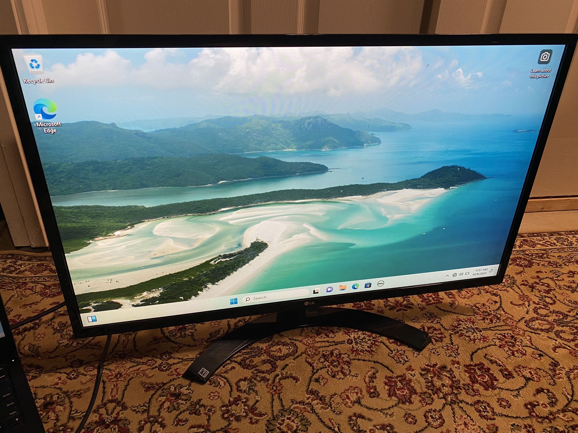 LG 32MP58HQ-P 32-Inch IPS Monitor with Screen Split, Black in great shape,clean and fully functional. Comes with Power Brick and hmdi cable. Full HD IPS display On screen control; Black stabilizer; Refresh rate 60 Hertz OS compatibility windows 10 Screen split 2.0 ,Dimension without stand (WxHxD) 28.6x 16.9x 3.7 Inch with stand (WxHxD) 28.6 x 19.4 x 8.1 Inch Resolution 1920 x 1080; Aspect Ratio 16:9. Surface Treatment : Anti Glare, 3H.Refresh Rate 60 Hertz INPUTS/OUTPUTS: HDMI (ver 1.4) Yes D Sub Yes; Reader Mode. Contrast ratio - 1000:1 32MP58HQ-P Key Features: - Full HD IPS Display - On-Screen Control with Screen Split 2.0 - Black Stabilizer - Reader Mode Boasting true-to-life colors, IPS monitors lessen color loss and help to keep colors consistent at virtually any viewing angle. The LED backlighting delivers deep black levels and rich colors for an amazing contrast and color detail. Features Full HD IPS Display IPS (In-Plane Switching) technology highlights the performance of liquid crystal displays. Response times are shortened, color reproduction is improved, and users can now view the screen at virtually any angle. On-Screen Control with Screen Split 2.0 On-Screen Control puts a host of essential monitor settings into a handy window for quick, easy access. Volume, brightness, picture mode presets, Screen Split 2.0 and Dual Controller and more can now be adjusted with just a few clicks of the mouse, instead of hard buttons on the monitor. Reader Mode Reducing blue light to help lessen eye fatigue, Reader Mode provides optimal conditions for reading. With just a click of a mouse, you can comfortably read your monitor screen. Black Stabilizer Keep visibility even in dark scenes. LG's Black Stabilizer senses dark scenes and helps make it brighter so that you can find the enemies hiding and waiting to attack your player in the dark.