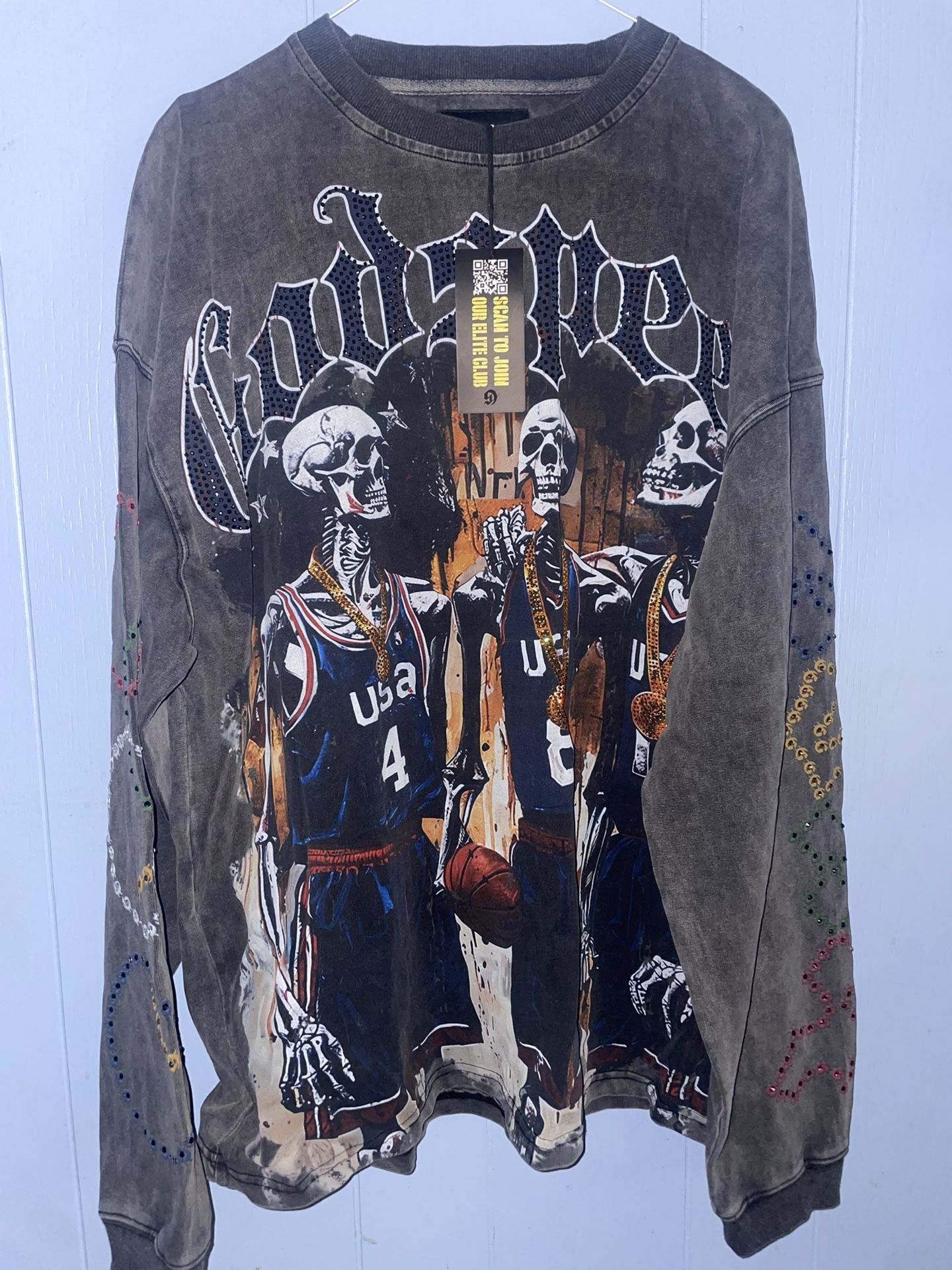 Brand new 100% authentic Godspeed rhinestone dream team xl long sleeve studded vvs Tags (ignore) Amiri, hellstar, lost hills, hell star, vale lives, valley, a bathing ape, lost shdws, purple brand, valabasas, gucci, supreme, Louis Vuitton, Warren lotus, essentials, gallery dept, ksubi, vertabrae, goosebumps, Godspeed