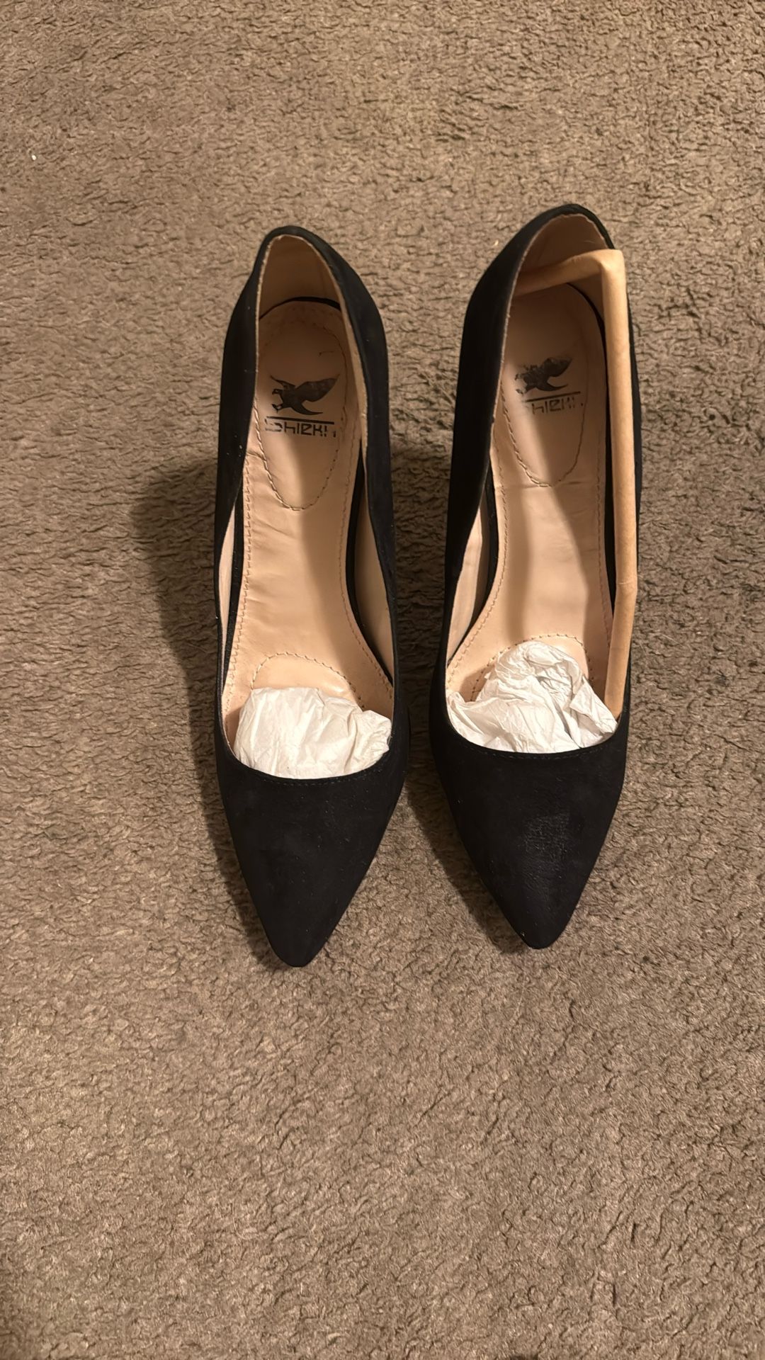 Black high heels, suede women’s size 8 only wore 1time and very good condition lightly used”(contact info removed)