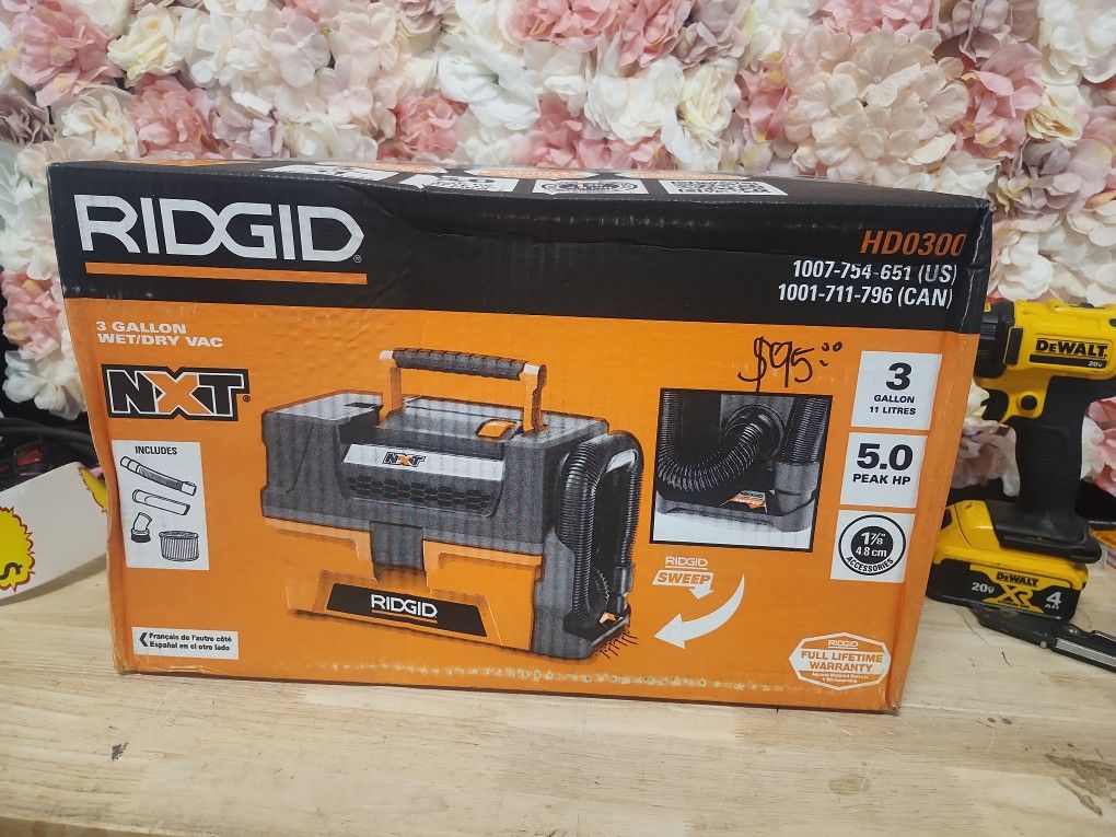 RIDGID 3 Gal. 5.0 Peak HP NXT Shop Vacuum Wet Dry Vac with Fine Dust Filter, Expandable Hose and Accessory Attachments HD0300