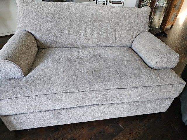 2 love seats available $200 each 5 feet by 44 inches like new condition. Removable covers, gray, like new, smoke free home. 2 recliners available leather, good condition $500 each.