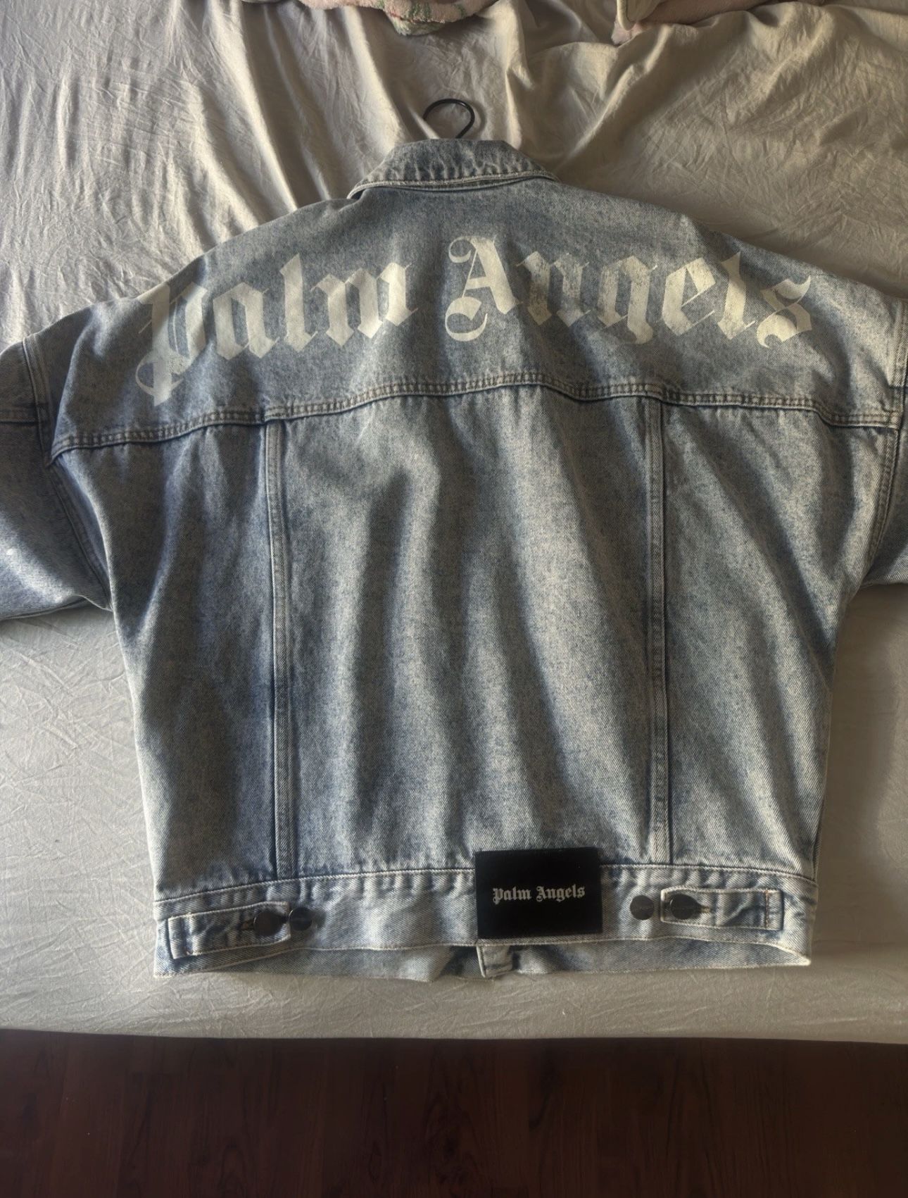 Used Palm angels denim jacket light blue/jean color. The logo started peeling off after i dry cleaned it once. Jacket is in good condition. Size XS. 100% authentic. Bought from SSENSE. No lowballs, no dumb questions. Straight to the point. If you want it lets seal the deal. Getting rid of some of my designer wardrobe items. Contact me if interested retails for $800