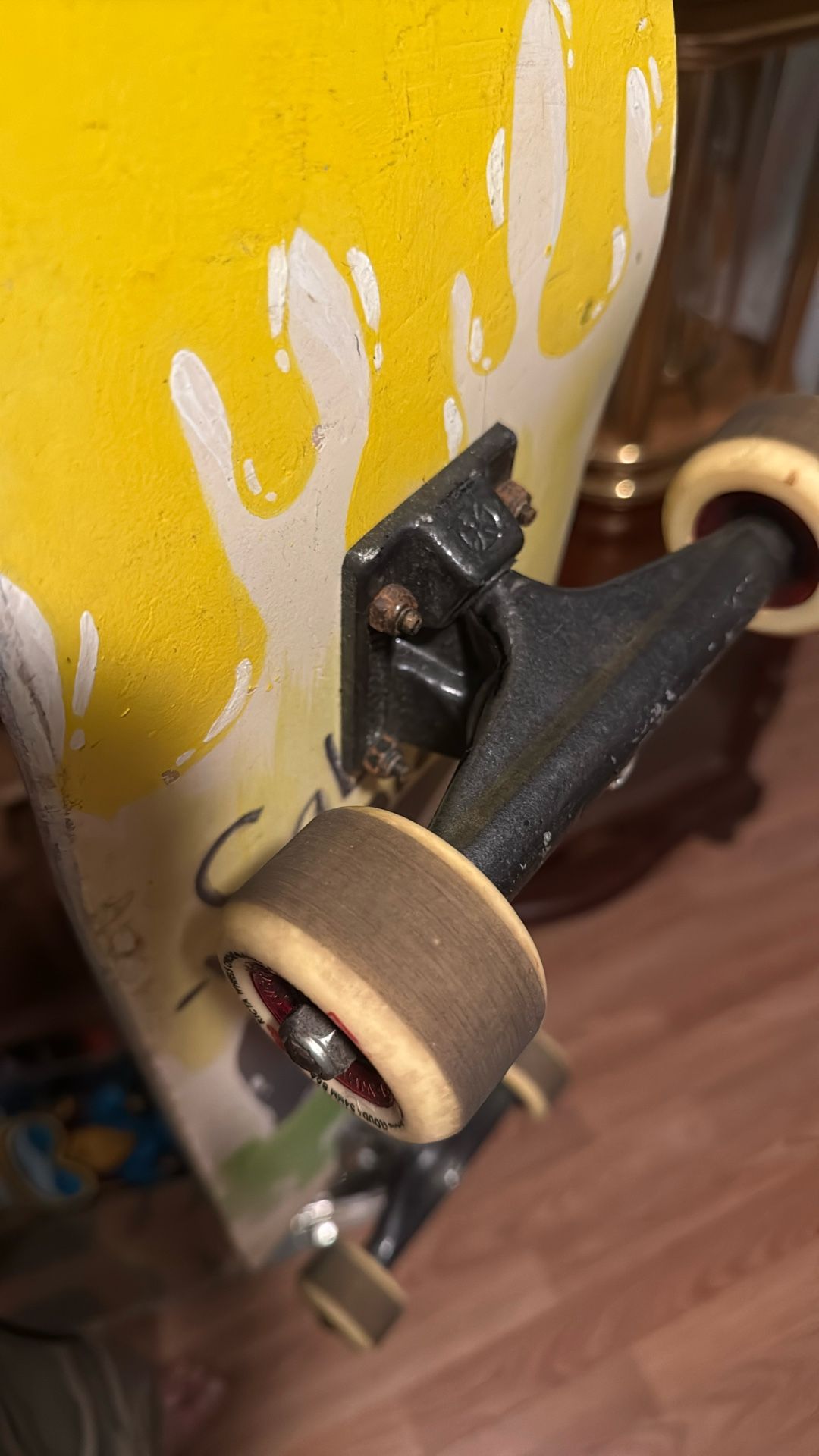 Vintage custom painted California skateboard with independent trucks custom wheels custom bearings.