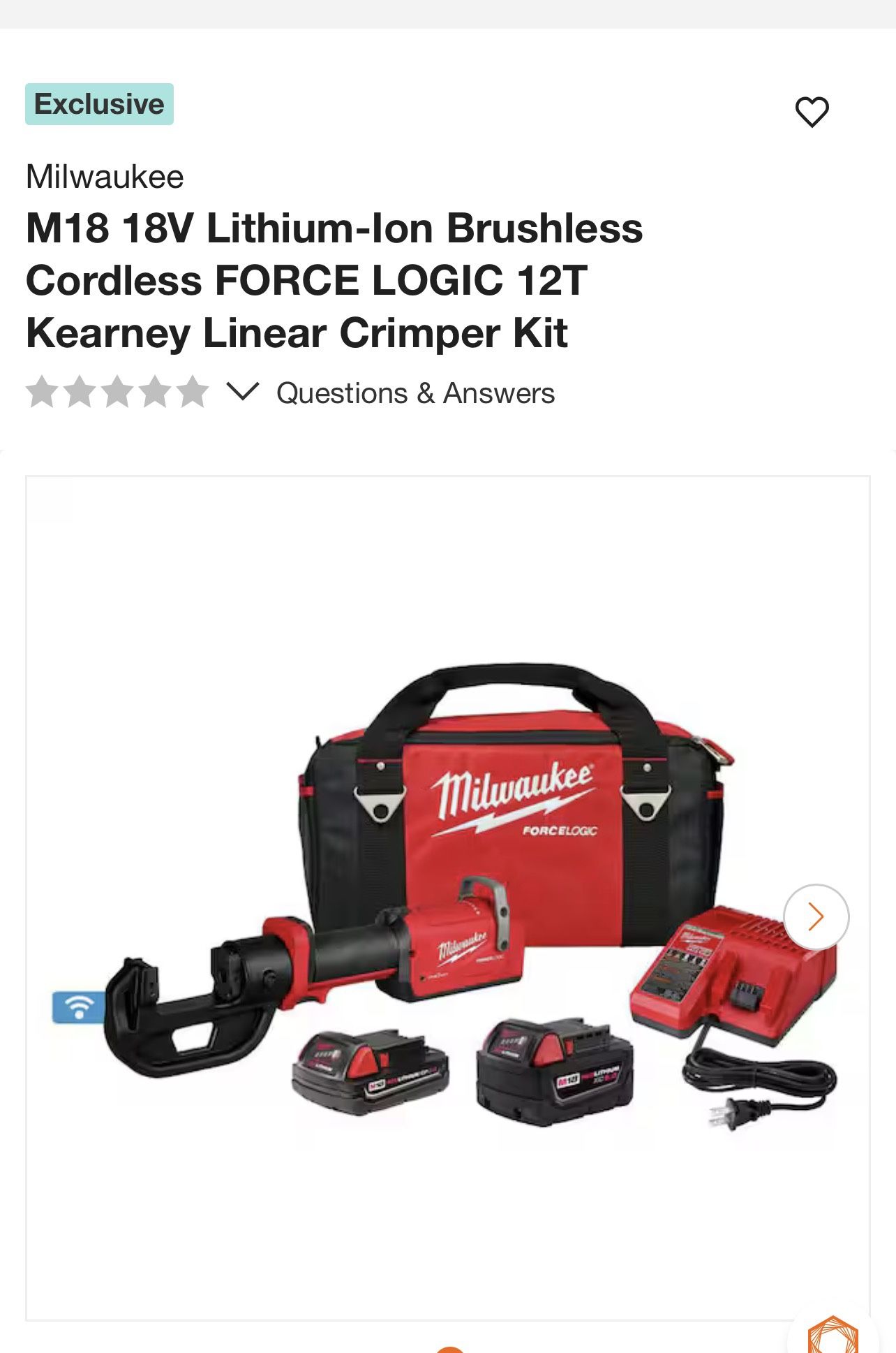 Milwaukee M18 18V Lithium-Ion Brushless Cordless FORCE LOGIC 12T Kearney Linear Crimper Kit