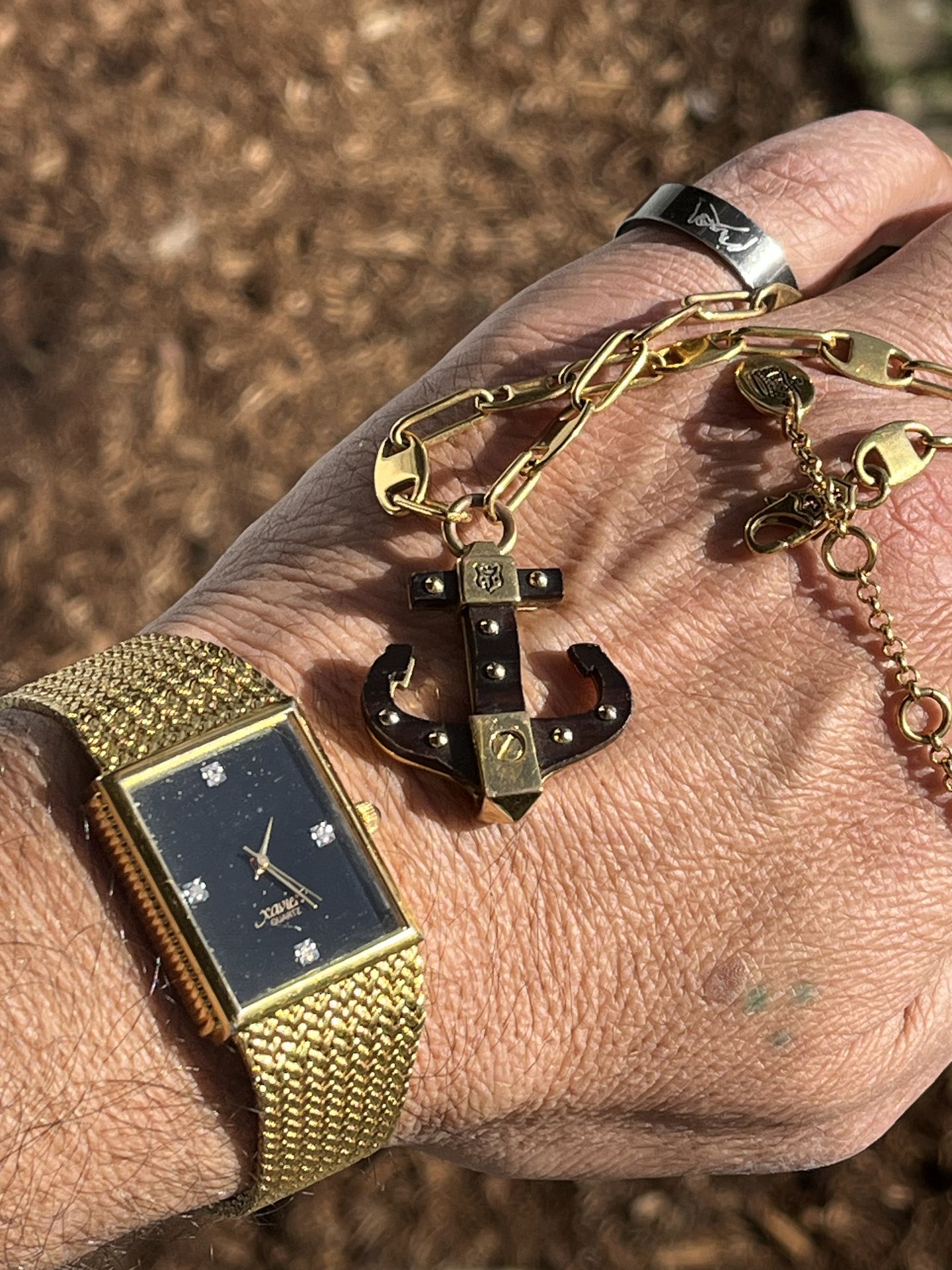 Vintage Juicy Couture Wood Anchor And Mariner Link Necklace 16 inches long. She’s a lady vibe’s Paired with a 1997 Xavier Tank Style Wristwatch With Authentic Diamonds In Dial. $300 Cash Or Cashapp