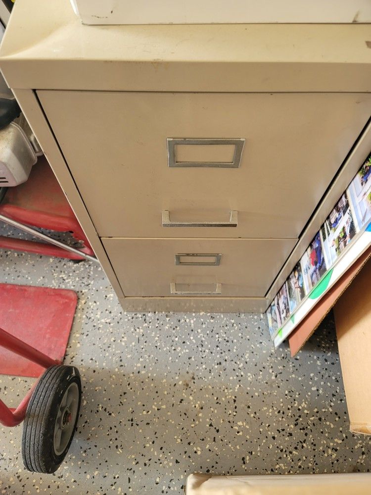 Tan metal file cabinet