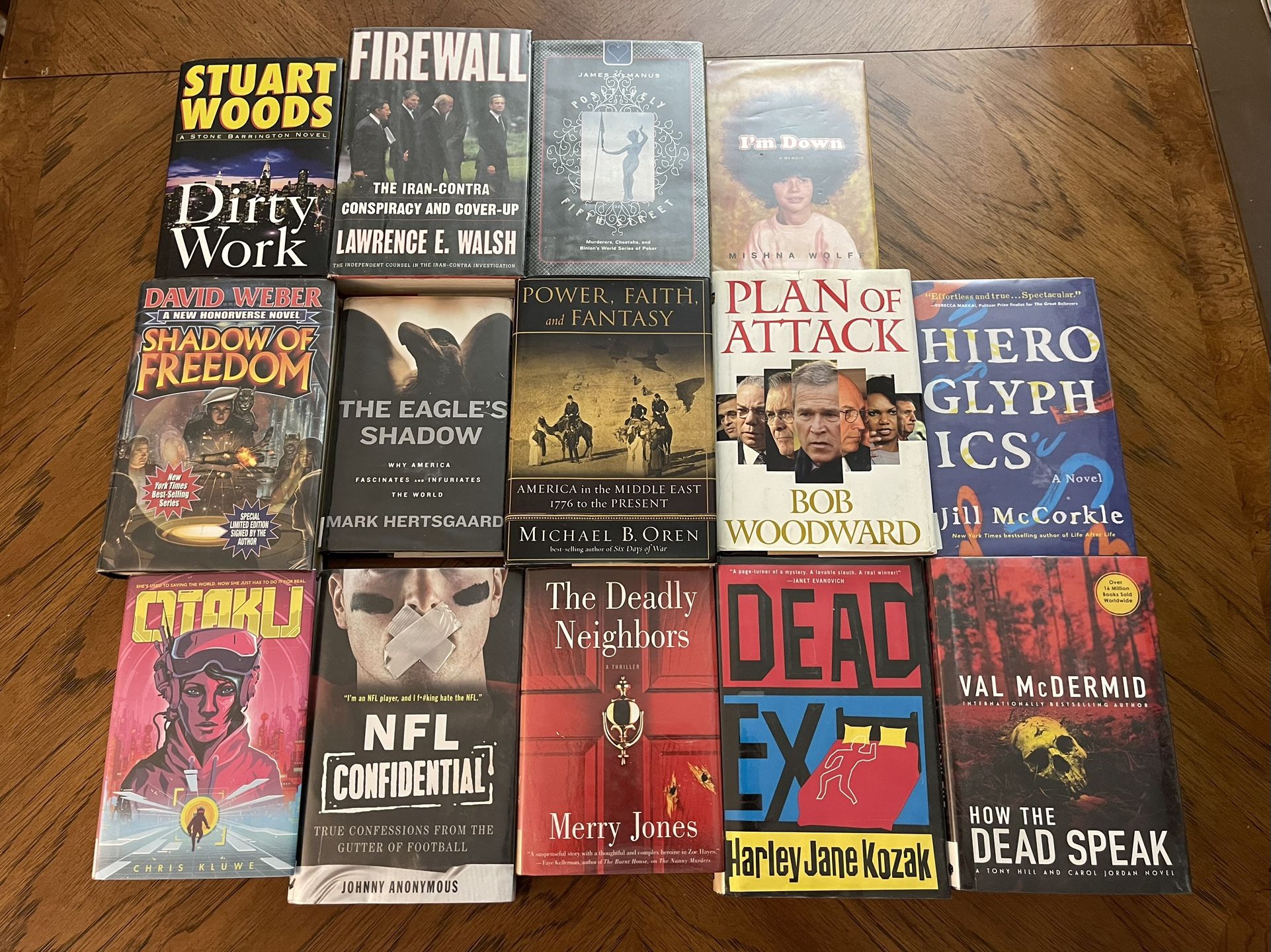 Random Mix of 14 Hard Cover Books Condition: someone gave these to me to sell, and it looks like the condition varies per book. The NFL and the Power Faith and Fantasy books have some water damage, the deadly neighbors has some inside cover damage, and the Dead Ex book looks like it’s missing a cover page (see pics for examples). Some of the other ones are in excellent condition. All look good enough to read. Price: $10.00 (for the lot)